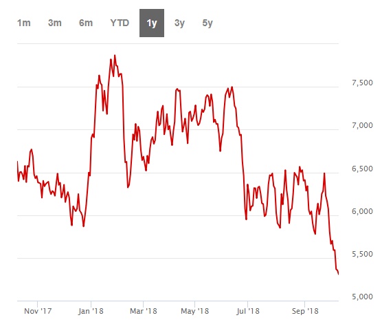 在资本市场上,内房股今年以来的走势已提前体现了房产市场的秋意。