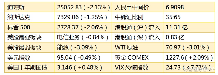 1. 昨天全球股市都出现调整,港股要说哪里稍微好点儿就是国庆节开市先跌为敬,昨天的跌幅就少了那么一点点。作为伟大的特朗普大帝,股市大跌的锅肯定是不背的,不带一丝烟火气的就丢给了美联储。昨天特朗普还说对亲手送上去的鲍威尔表示失望,但是没考虑换人。虽然锅丢了,但是并不代表美联储可以选择不加息,美国货币收紧的方向不会变。而且美联储加息也不是美股大跌的理由。恰好昨天本刊说到几个首席关于美股见顶的事情,这一次暴跌是不是最后的转折点,只有上帝和骗子能够提前预知。但对于港股来说,美股没有牛市终结,中美贸易摩擦方向没有扭转,国内近期的经济数据还没完全出来的情况下,说港股见底都太早了。