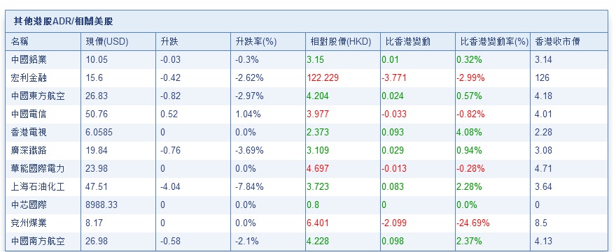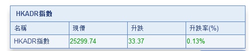 智通财经APP获悉,隔夜美股连续第二日暴跌,港股ADR却靠稳,截至收盘,按比例计算,收报25299.74点,升33.37,升0.13%。