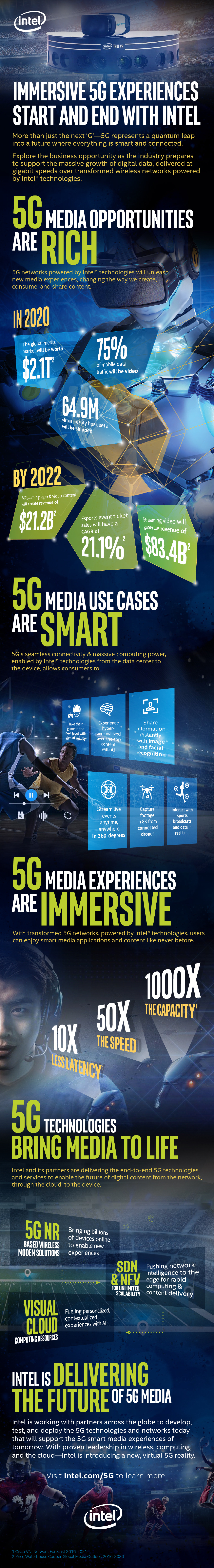 英特尔称,“5G将不可避免地颠覆传媒和娱乐产业前景。如果企业能够顺应5G潮流,它将成为一项极其重要的竞争资产。否则,企业就有失败、甚至是被淘汰的风险。”