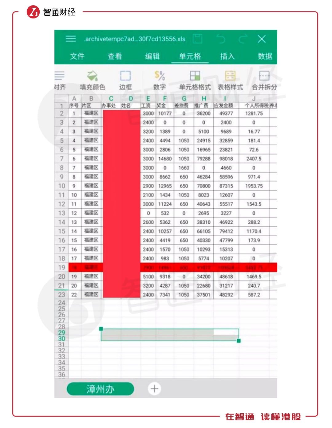 根据内容显示,某国内药企的医药代表在建地区的推广费超过9万元。标红的“序号18”一行显示,某医药代表工资2900元,奖金14961元,推广费91013元,最终应发金额达到109524元。