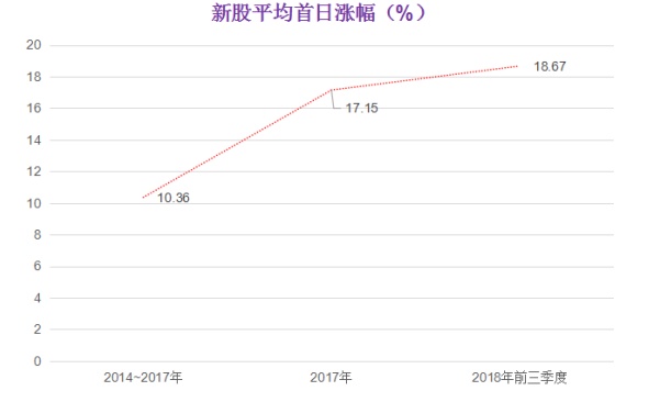 2018年前三季度累计上市新股155家,比2017年全年公开发行的148家还要多。下面从新股的几个指标来看看市场整体情况。