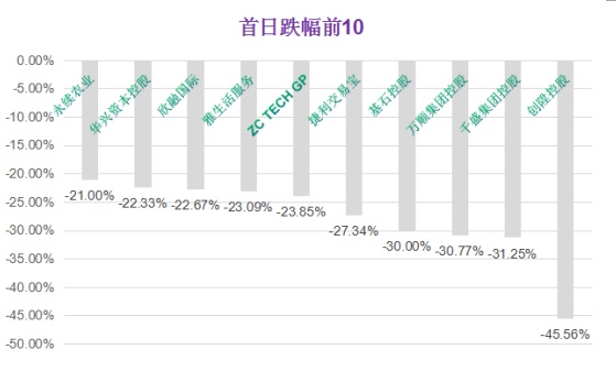 今年的新股跌起来,不去年更凶残。首日跌得最多的10只新股跌幅都在20%以上,其中创业板4家。创升控股跌最惨,高达45.56%,开盘即跌37.78%,一点跑路的机会都不给。