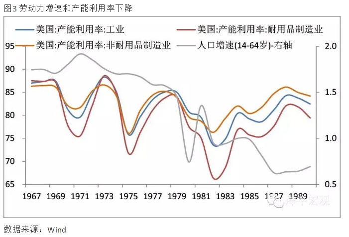进入20世纪70年代后,美国适龄劳动力人口增速下降。1971年,美国14-64岁适龄劳动力人口增速为1.9%。之后,该数值一路下滑,到1980年,该值下降到0.7%。