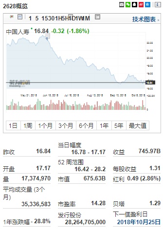 截至今日收盘,中国人寿(02628)报16.84港元,跌0.32%。