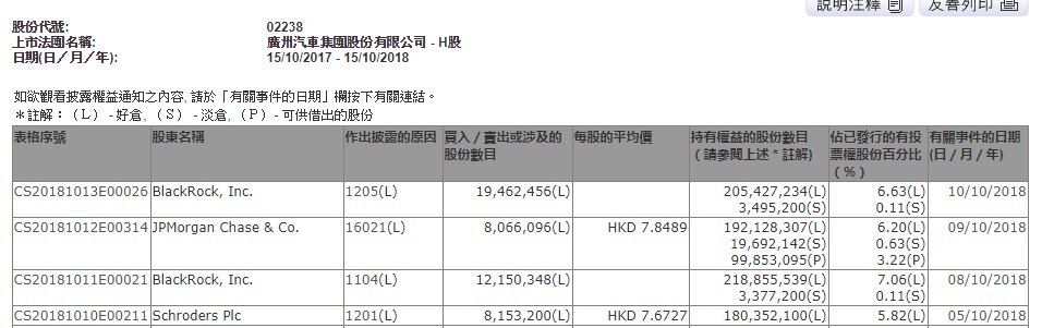 智通财经APP获悉,根据香港联交所资料显示,摩根大通于10月9日减持广汽集团(02238)806万股,每股作价7.84港元,总值约6319万港元,最新持股数目约1.92亿股。