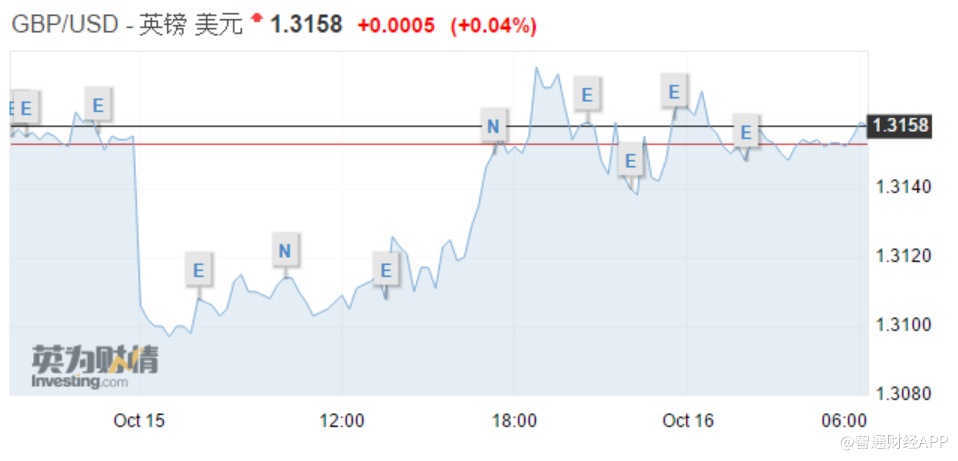 英镑兑美元闻讯短线上涨近40点,最高涨至1.3169。