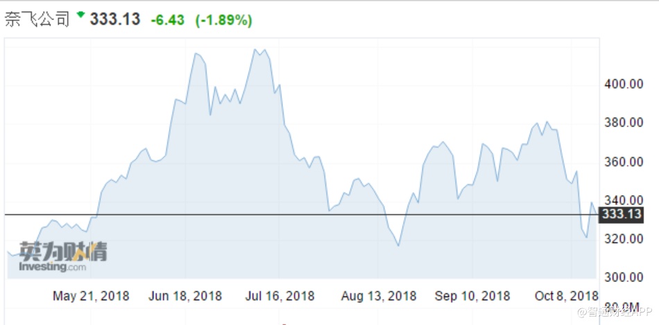上周美股遭遇普遍抛售,奈飞股价上周也累跌6.1%。其股价周一收报333.13美元,跌1.89%。