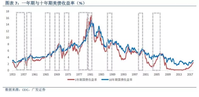 我们认为,利率倒挂的可能性在上升。具体而言,有以下四大原因:第一,美联储加息,推动短端利率上升。从历史上来看,短期国债收益率与政策利率高度相关,美联储加息是短期国债利率上升的主要原因。未来一年,美国经济很可能保持相对较好的增长势头;受中美贸易战影响,明年上半年美国通胀压力上升。从现在到明年,预计美联储加息4次左右,短端利率上升空间大。