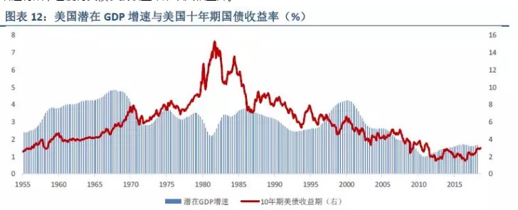 第二,受美国潜在GDP增速影响,长端利率难以同比例上升。目前,美国潜在GDP增速处于历史低位,除非出现技术突破,否则美国长期经济增速不大可能大幅提升,制约了长端利率上升的空间。