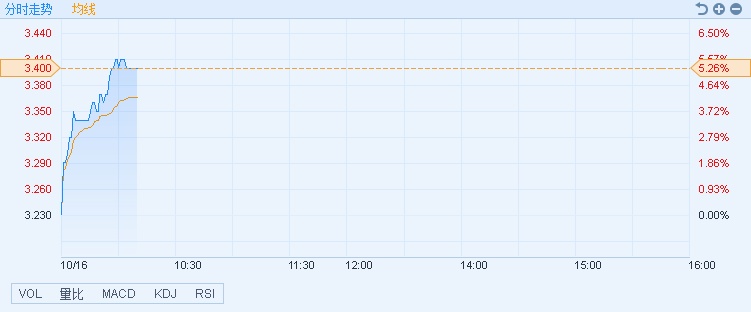 智通财经APP获悉,前三季净利润约49亿至53亿,中煤能源(01898)早盘股价上涨,截至10时09分,涨5.26%,报价3.4港元,成交额1020.32万。