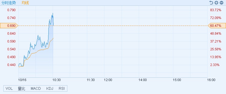 智通财经APP获悉,兴业新材料(08073)昨日急挫64%,今日早盘股价反弹,截至10时30分,涨60.47%,报价0.69港元,成交额1244.46万。
