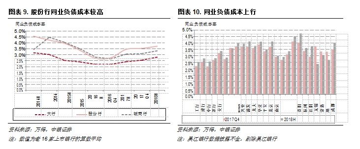 因此2016年4季度以来,市场资金利率上行影响对中小行负债端成本带来上行压力,受重定价期限结构影响, 2018年上半年中小行的压力仍存。