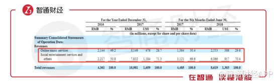 可见,腾讯音乐旗下4款产品中有3款产品是通过带有社交属性的互动打赏进行变现,这也就不难理解为何2017年该分部业务的收入占比达到70%。