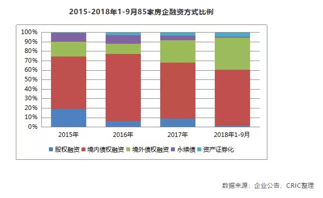 进入2018年以来融资环境持续收紧,政府出台多项政策防范房地产行业的债务风险,不仅境内多家房企公司债因限制增多而被迫中止,房企境外发债也受到多方限制,如2018年6月27日发改委强调“房企境外发债不得投资境内外房地产项目、补充运营资金,仅限归还存量债务,并要求企业提交资金用途承诺”等。在境内融资受限,境外融资用途被强制限定的情况下,房企的融资结构发生什么样的变化呢?