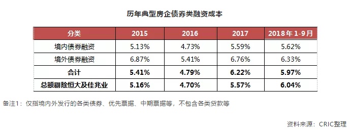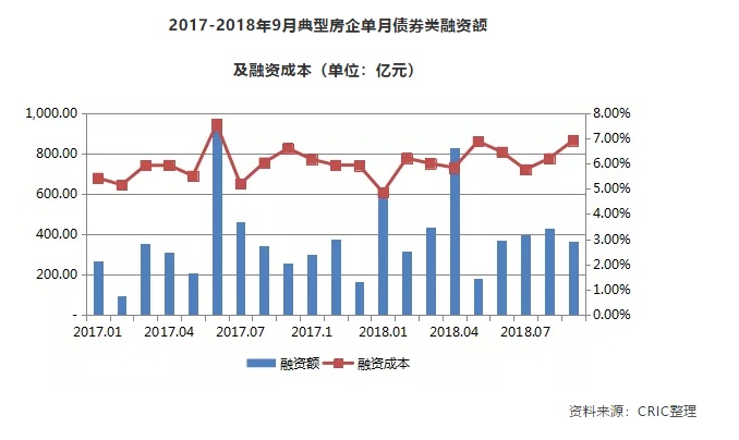 从单月表现情况来看,2018年春节以来房企的各月平均融资成本,除6月外,基本都较上年同期有所增加,2017年6月恒大和佳兆业集中发行成本相对较高的“老换新”境外优先票据拉高了基数。7月整体融资成本受结构性影响下滑至5.76%,9月再次反弹至6.91%,达到去年下半年以来的最高值,房企融资成本的增加预计将进一步限制融资规模的增长。