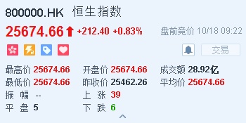 智通财经APP获悉,昨天因为重阳节港股休市。恒生指数开盘涨0.83%,报25674.66点。国企指数涨0.5%,报10249.6点。红筹指数涨0.62%,报4141.06点。大市盘前成交28.92亿港元。