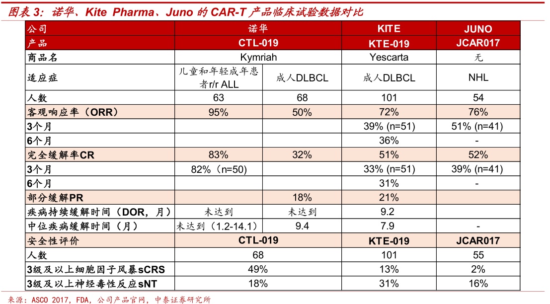 诺华和和KiteCAR-T产品在2017年先后获批上市