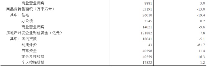 9月末,商品房待售面积53191万平方米,比8月末减少682万平方米。其中,住宅待售面积减少437万平方米,办公楼待售面积减少26万平方米,商业营业用房待售面积减少172万平方米。