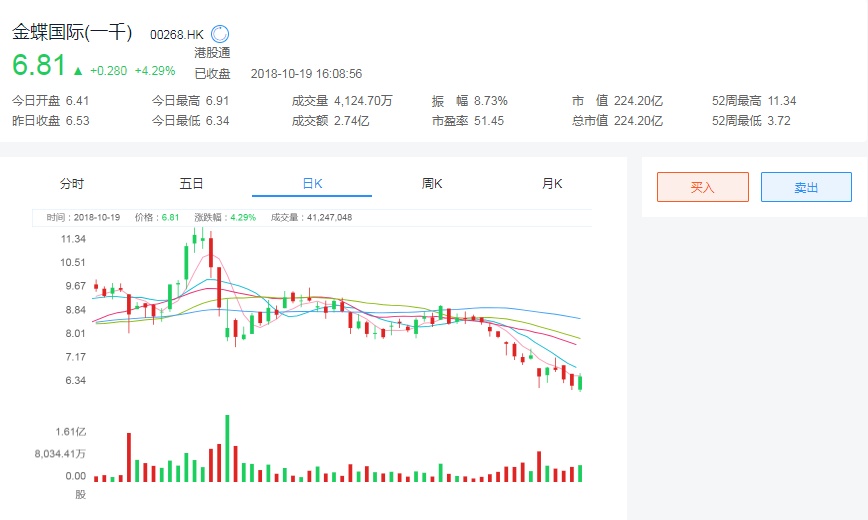 截至今日收盘,金蝶国际(00268)报6.81港元,涨0.28或4.29%。