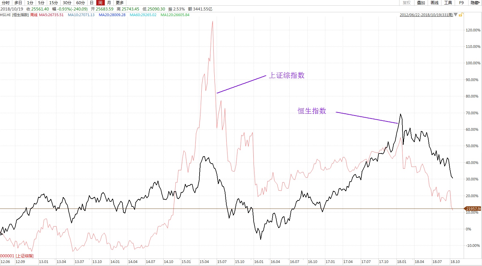 今年以来,受国内外各种因素叠加影响,A股熊冠全球,上证指数年初至今累计下跌超过两成,昨天更是跌破了2500点的整数心理关口,将近一半的股票今年跌幅达到40%,股票型基金大幅亏损,个人投资者爆仓言论不绝于耳。港股也是熊途漫漫,恒指在估值已经是全球洼地的基础上今年以来仍旧下跌了14.6%,港A两地投资者苦不堪言。