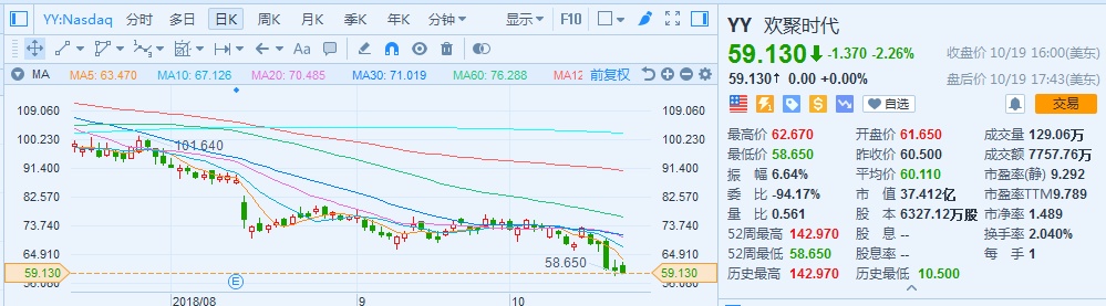 但与抄底呼声相对,10月17日,摩根士丹利却下调了公司目标价,欢聚时代股价再次暴跌超12%至60.54元每股,创下52周新低。