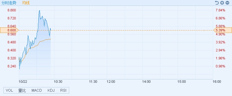 智通财经APP获悉,前9个月净利润同比增长130%至60.9亿港元,华润水泥(01313)早盘股价攀升,截至10时23分,涨5.39%,报价8.6港元,成交额9753.15万。