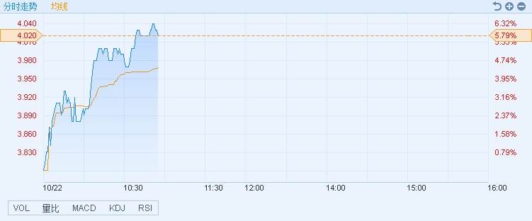 Pearl增持82.8万股,彩生活(01778)早盘随市上涨,截至10时54分,涨5.79%,报价4.02港元,成交额816.95万。
