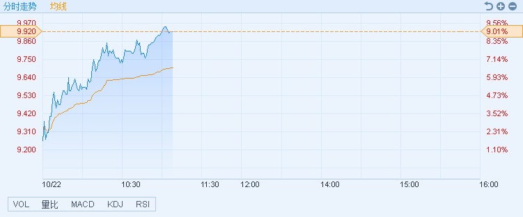 智通财经APP获悉,将于下周一(10月29日)公布三季度业绩,比亚迪电子(00285)股价持续走高,截至11时07分,涨9.01%,报价9.92港元,成交额3878.36万。