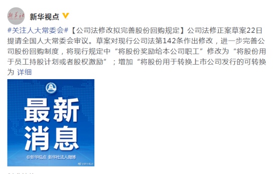 草案对现行公司法第142条作出修改,进一步完善公司股份回购制度,将现行规定中“将股份奖励给本公司职工”修改为“将股份用于员工持股计划或者股权激励”。