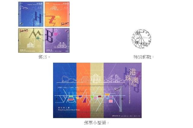 同时为纪念大桥启用,中国邮政、香港邮政和澳门邮电于同日共同发行一款联合纪念套摺,内附一张小全张,嵌有由三地邮政发行的特别邮票各一套。