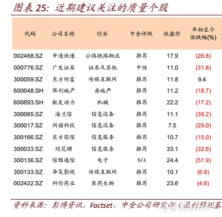 2)长线投资建议逐步吸纳符合消费升级与产业升级方向、近期补跌的质优蓝筹。我们在图表 25 梳理了一些相关标的供投资者参考。