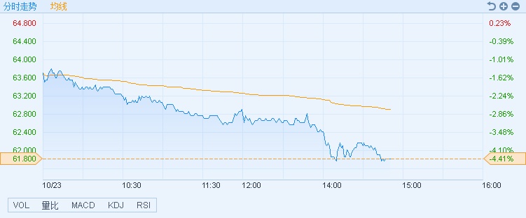 智通财经APP获悉,遭里昂降目标价至71港元,友邦保险(01299)拖累恒指105点,午后挫逾4%。截至14时50分,跌4.41%,报价61.8港元,成交额8.45亿。
