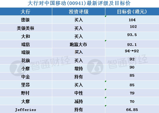 瑞银:下调中国移动(00941)盈测 目标价降至92港元