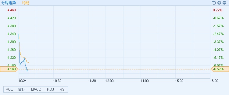 智通财经APP获悉,前三季度股东应占净利同比下降29.33%至19.89亿元人民币,华能国际电力股份(00902)早盘股价受挫,截至9时45分,跌6.52%,报价4.16港元,成交额6347.73万。