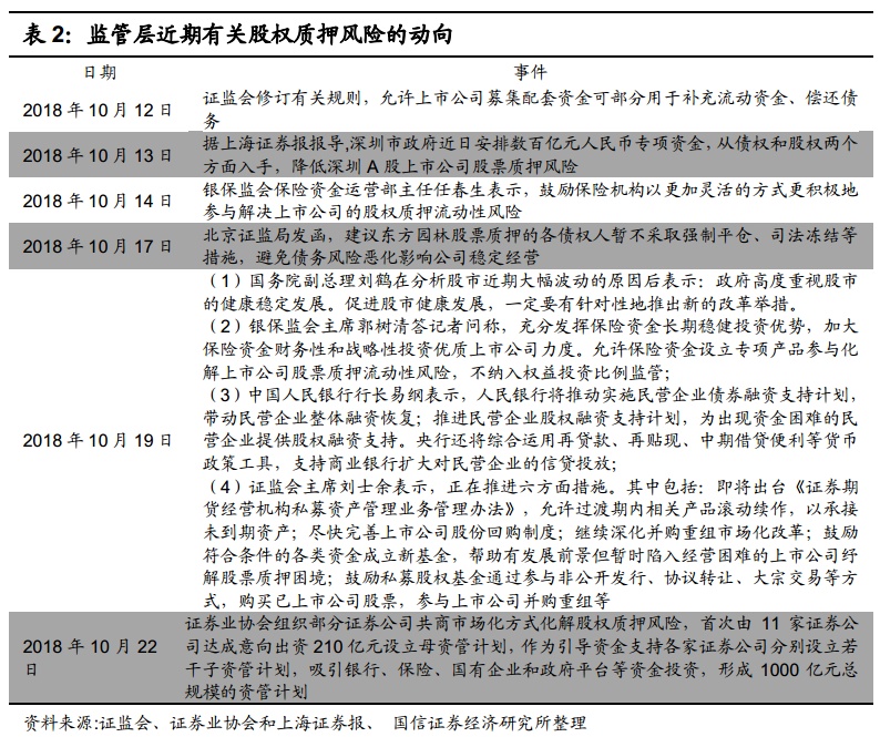 近期,监管层密集发声,以市场化方式缓解股票质押业务风险,各市场参与方,包括各地政府、央行、证券会、银保监会等,正积极推出相关政策,通过各类金融机构更着实有效的帮助市场化解 A 股的股权质押风险,同时推动股票市场的健康发展。