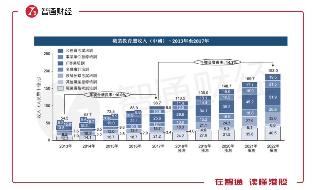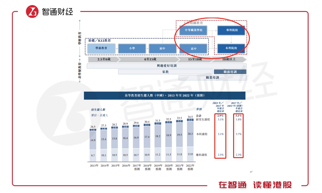 从过去五年职业教育收入16%未来预计14.3%的年复合增长率也可以看到,职业教育在中短期内的市场还有很大的开发空间。而能否把握住这个机会就各凭本事了。