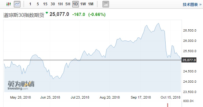 截止发稿时间,道指期货报25073点,下跌171点或跌0.68%。