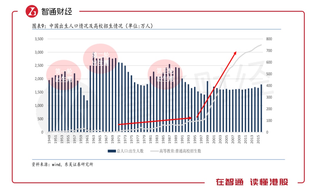 中国的人口结构图显示,中国的第三轮出生潮的时间区间是1985年至1990年,这一区间出生的人纷纷结婚生子,他们的儿女开始陆续步入基础教育阶段。这预示着K-12教育行业即将迎来“风口”。所以,不少社会资本纷纷“杀入”K-12教育行业。