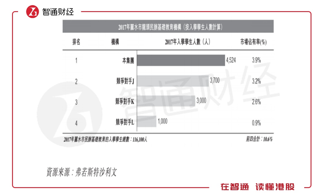 丽水市所在的浙江省是中国经济最发达的省份之一,从2013年到2017年,该省城镇家庭教育人均年支出的复合年增长率为9.2%,未来5年预计年化增速为8.6%。同时期浙江省民办基础教育学生入学人数4年间复合增长率为1.5%,未来5年预计年化增速为1.6%。