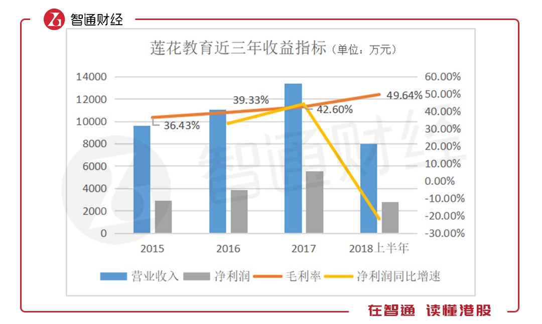 莲花教育的净利润增速在2016年和2017年都保持30%以上。2018年上半年同比下降22%,原因在于行政开支出现异常增加,但智通财经APP发现招股书在这一项出现了明显的计算错误。