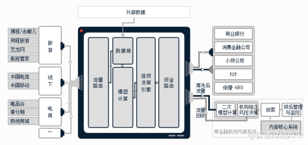 品钛通过上游的消费金融公司取得资金来源,再与下游机构客户合作取得用户流量,通过机构客户将资金贷给有场景消费需求的个人。