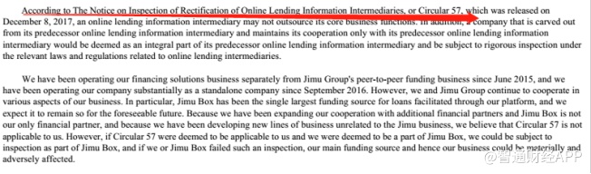 而这极容易触发国内的监管条例。去年12月8日,P2P网贷风险专项整治工作领导小组办公室下发了关于P2P网贷监管的“57号文”,其中明确提出:“网贷机构业务外包及机构分立,不得外包核心业务。因业务分割分立出的实体:视为原网贷机构组成部分,一并验收管理。”