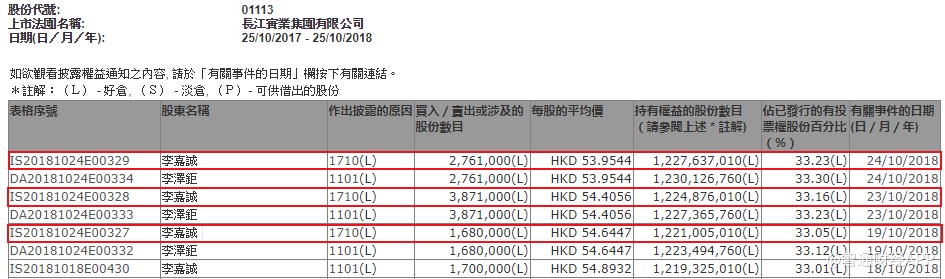 据联交所资料显示,由今年4月至10月24日,李氏父子透过私人公司及李嘉诚基金会多次增持长实股份,合共购入6573.35万股,涉资约39.5亿元,平均价每股59.88元。