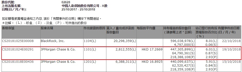 智通财经APP获悉,根据联交所资料显示,郭基辉于10月19日增持中国人寿(02628)281万股,每股作价17.27元,总值4856万元,最新持股量增至6.01%。