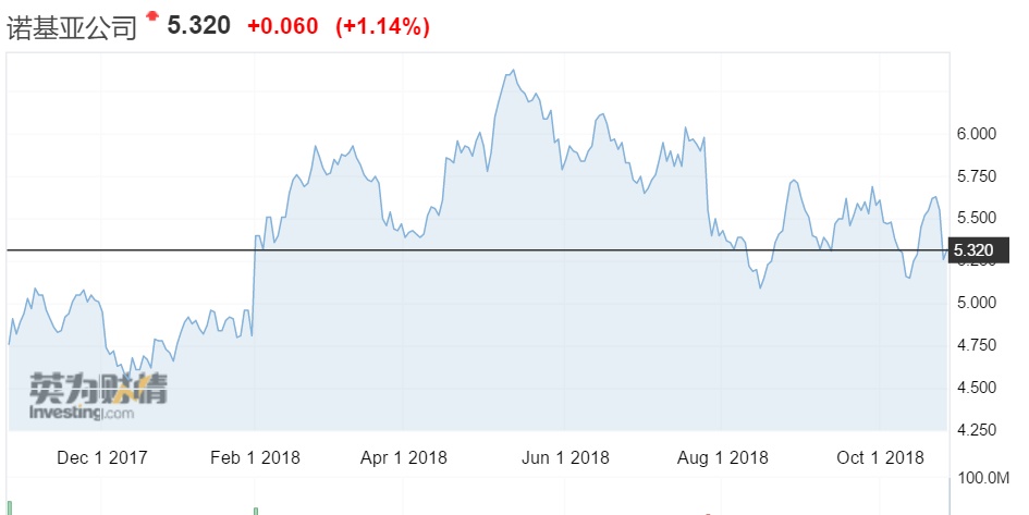 今年截至目前为止的交易中,诺基亚股价已累涨17%,原因是投资者寄希望于一个新的网络支出周期即将到来,其主要驱动力则是新一代5G网络的需求增长。