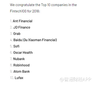 上述两位新金融领域巨头的一举一动都将成为引领行业的路标,再加上其强大的融资能力,占领Fintech100的榜首也是情理之中。