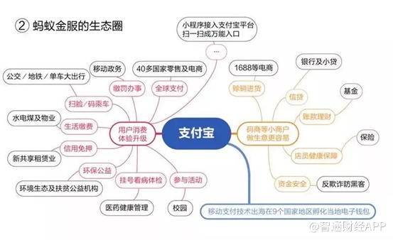 全球电子支付从0到1的里程碑式创新,基本来自于支付宝,在担保交易、快捷支付、反向扫码、先享后付、刷脸支付等核心技术上,全部由蚂蚁金服自主研发。截至目前,其生态圈已包含了银行及小贷、基金、保险、电商、出行、移动政务、物业等板块。