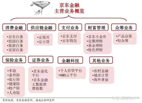 京东金融至今已发展出十大业务板块——供应链金融、消费金融、众筹、财富管理、支付、保险、证券、农村金融、金融科技以及海外业务,在公司金融和消费者金融进行双重布局,并且着力发展金融科技。