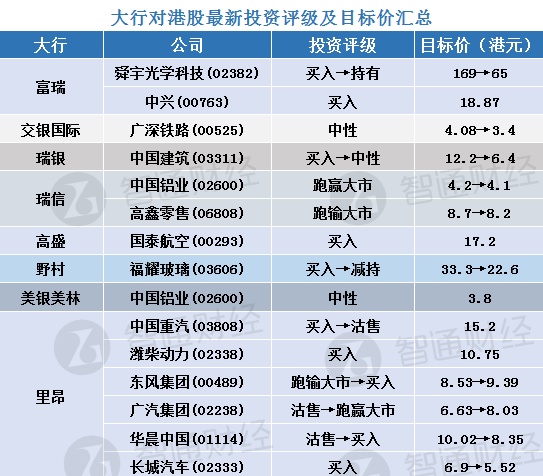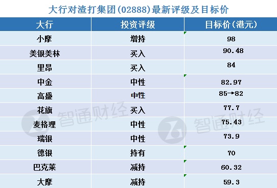 一、大行对渣打集团(02888)最新投资评级及目标价